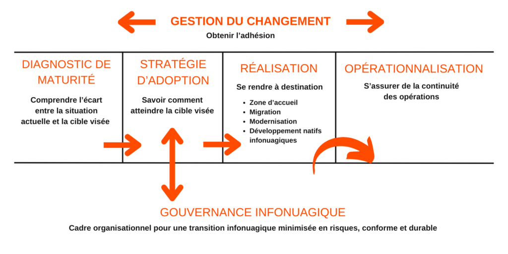 Un accompagnement complet qui couvre l’ensemble des étapes de l’adoption infonuagique